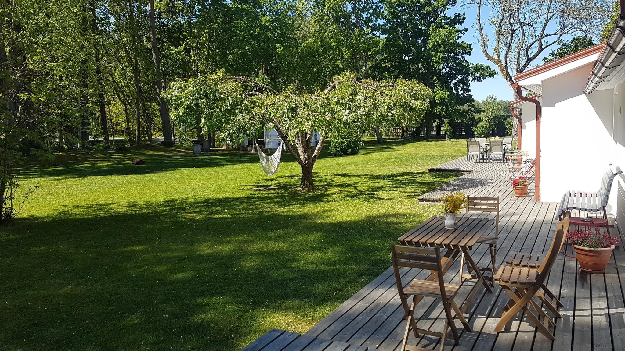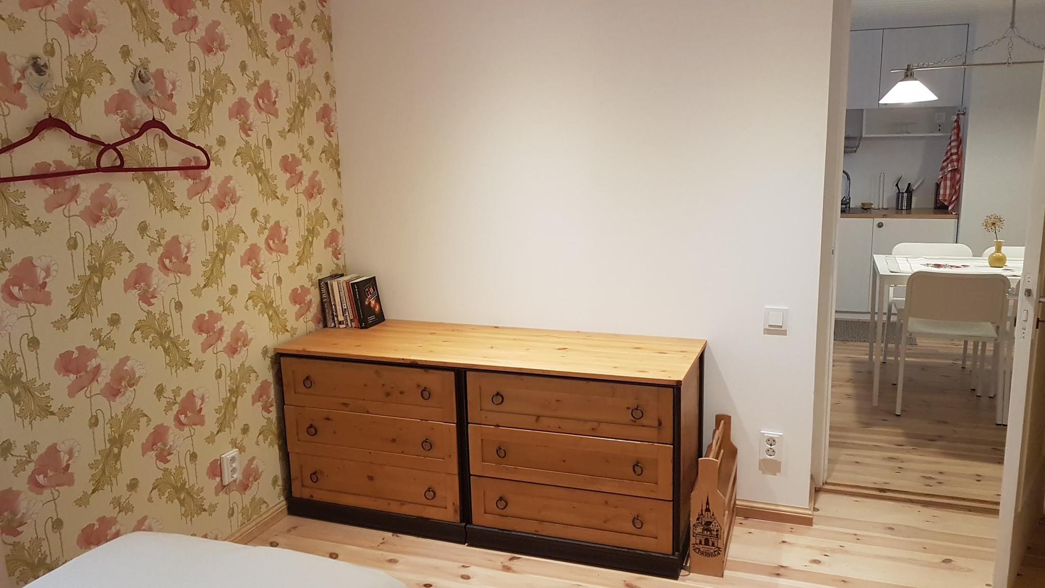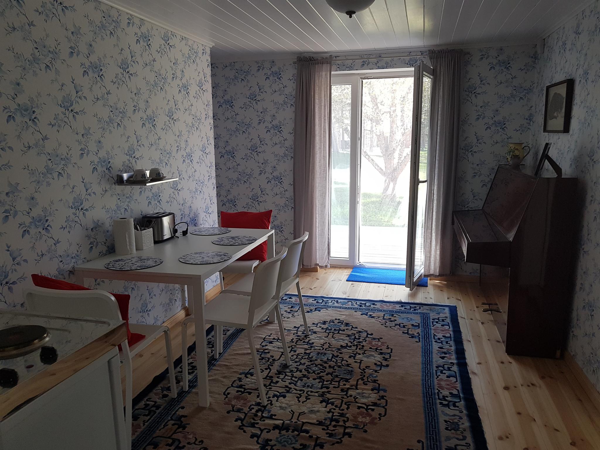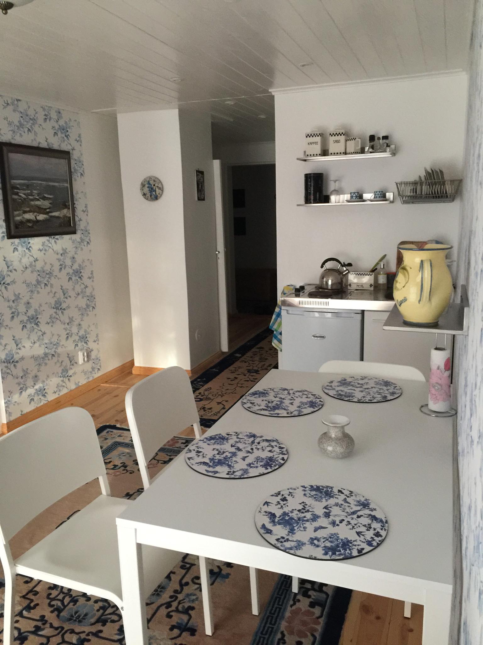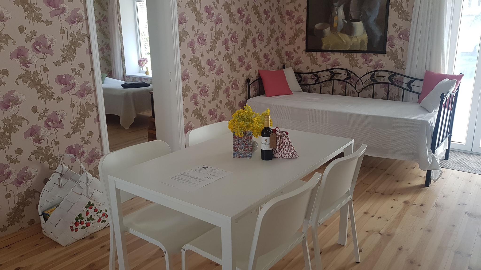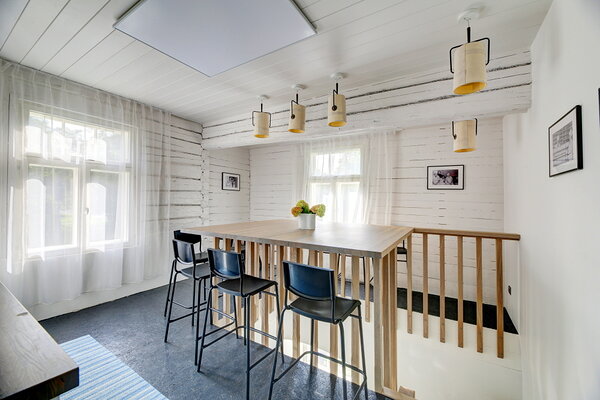 For larger groups, up to three more guests can stay in the sauna loft and the White Apartment is used by the host family during the summer. It accommodates up to three guests and is available for rent only by special arrangement together with the entire house.
