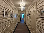 The interior design draws inspiration from the blue-black-white color palette of the Estonian flag, the long history of the house, and of course the beautifully striped traditional skirts of the Tõstamaa parish. All photographs and objects used in the house have been donated by the local community, and the room photos even feature people who worked and lived in the dairy at different times.