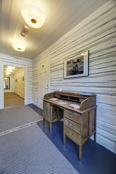 The atmosphere of the hotel rooms is Nordic—calm and bright. In the historic building, everything that could be preserved has been carefully retained, from century-old log walls and Tõstamaa’s famous yellow bricks to 1970s Estoplast light fixtures.